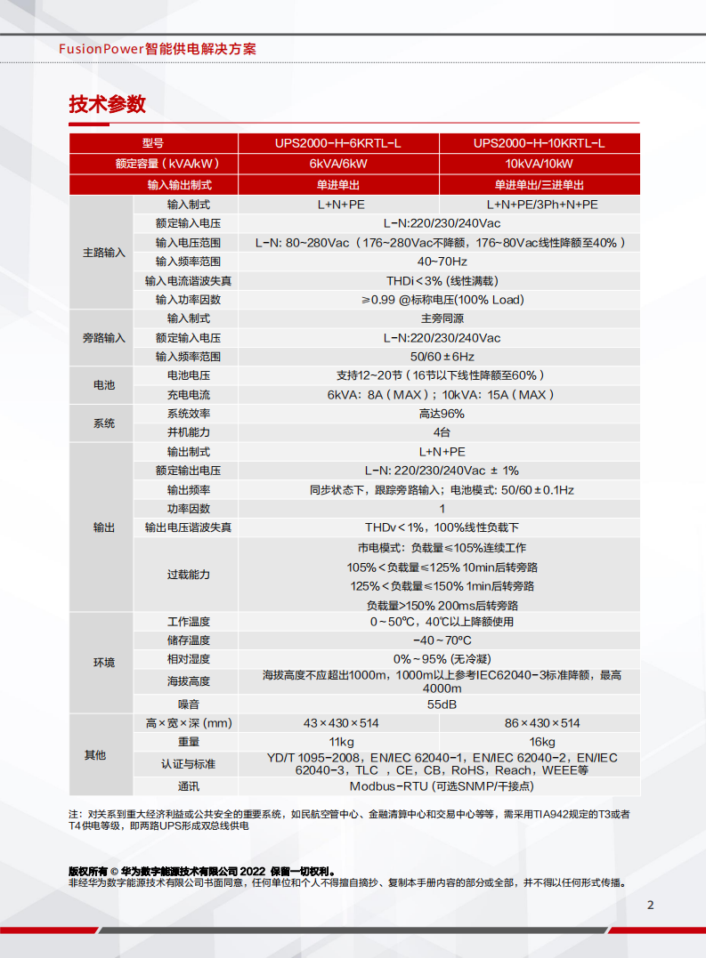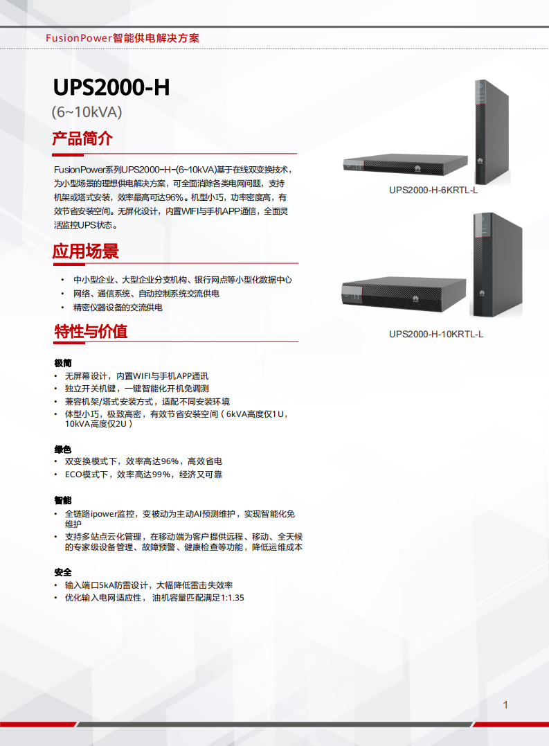 • FusionPower系列锂电新型号UPS2000-H-(6~10kVA)基于在线双变换技术为小型场景的理想供电解决方案,可全面消除各类电网问题,支持机架或塔式安装,效率最高可达96%。机型小巧,功率密度高,有效节省安装空间。无屏化设计,内置WIFI与手机APP通信,全面灵活监控UPS状态。